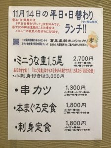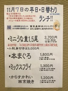 土曜日の営業時間は11:30〜14:00ラストオーダー(14:30閉店) 17:00〜21:00ラストオーダー(21:30閉店)