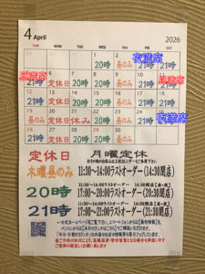 土曜日の営業は11:30〜14:00ラストオーダー(14:30閉店) 17:00〜21:00ラストオーダー(21:30閉店)