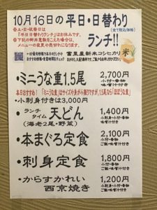 富里市産コシヒカリの新米を使用 ご飯のお代わり遠慮なくお申し付けください。『平日日替わりランチ』はご用意数をこえた場合、メニューの変更又は品切れとなります ご了承下さい。この他、グランドメニューにてうな重等もご用意しております