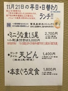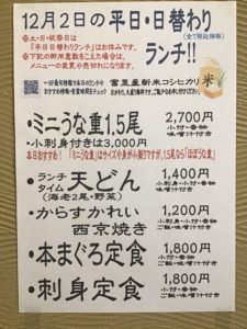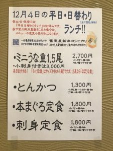 富里市産コシヒカリの新米を使用 ご飯のお代わり遠慮なくお申し付けください。『平日日替わりランチ』はご用意数をこえた場合、メニューの変更又は品切れとなります ご了承下さい。