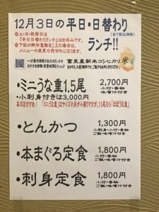 木曜日の営業時間は11:30〜14:00ラストオーダー(14:30閉店) お昼のみ