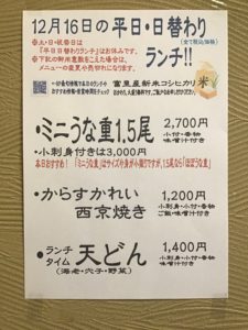 富里市産コシヒカリの新米を使用 ご飯のお代わり遠慮なくお申し付けください。『平日日替わりランチ』はご用意数をこえた場合、メニューの変更又は品切れとなります ご了承下さい。